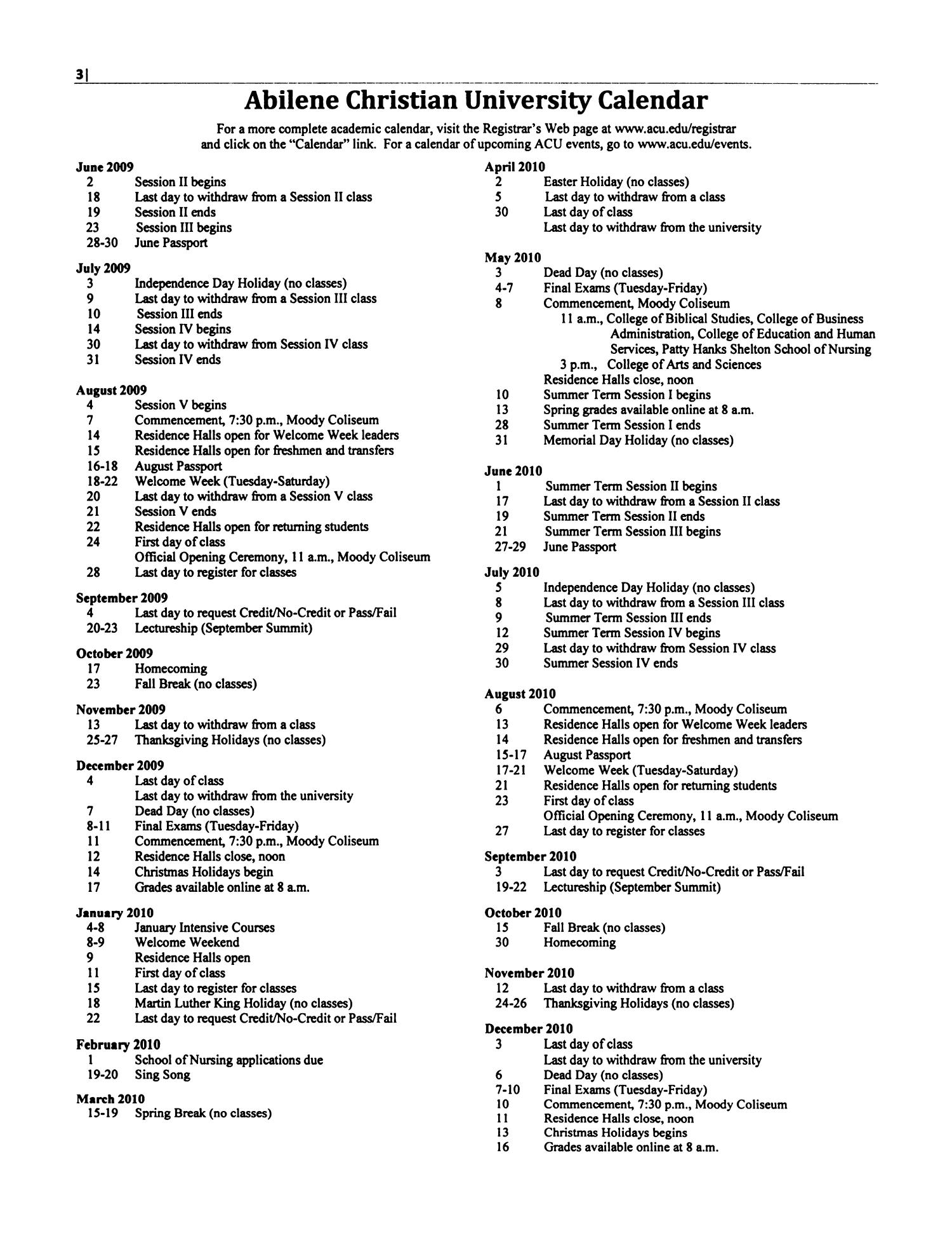 Catalog of Abilene Christian University, 20092010 Page 3 The Portal to Texas History