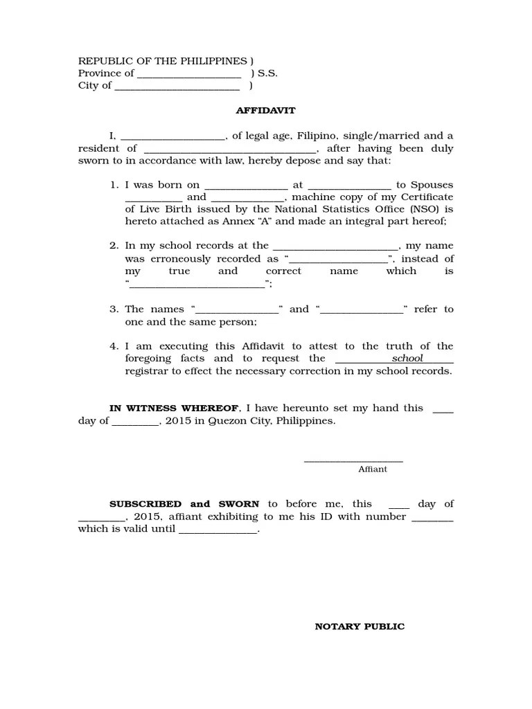 Affidavit Of One And The Same Person Template