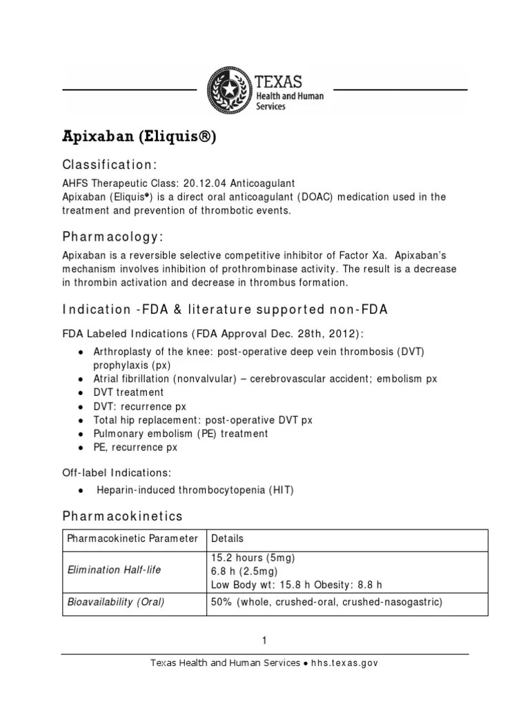 On studocu you find all the lecture notes, summaries and study guides you need to pass your exams with better grades. Decreases thrombin generation and thrombus development. Prevents cva/systemic embolism in patients with nonvalvular atrial fibrillation. On studocu you find all the lecture notes, summaries and study guides you need to. Apixaban ( eliquis) ati medication template contraindications/precautions, nursing interventions,.