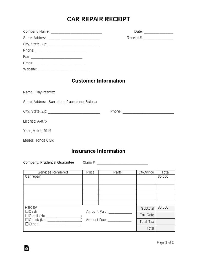 Download our free auto repair shop receipt template and customize it to use in your shop. The auto repair receipt template is one of the best. An auto repair receipt is an essential document for both vehicle owners and auto repair shops. Whether you run a large or small business, invoicing your customers is always very important.