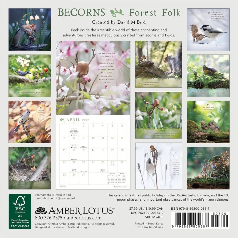 Becorns 2024 Wall Calendar Forest Folk by David M Bird Amber Lotus Publishing