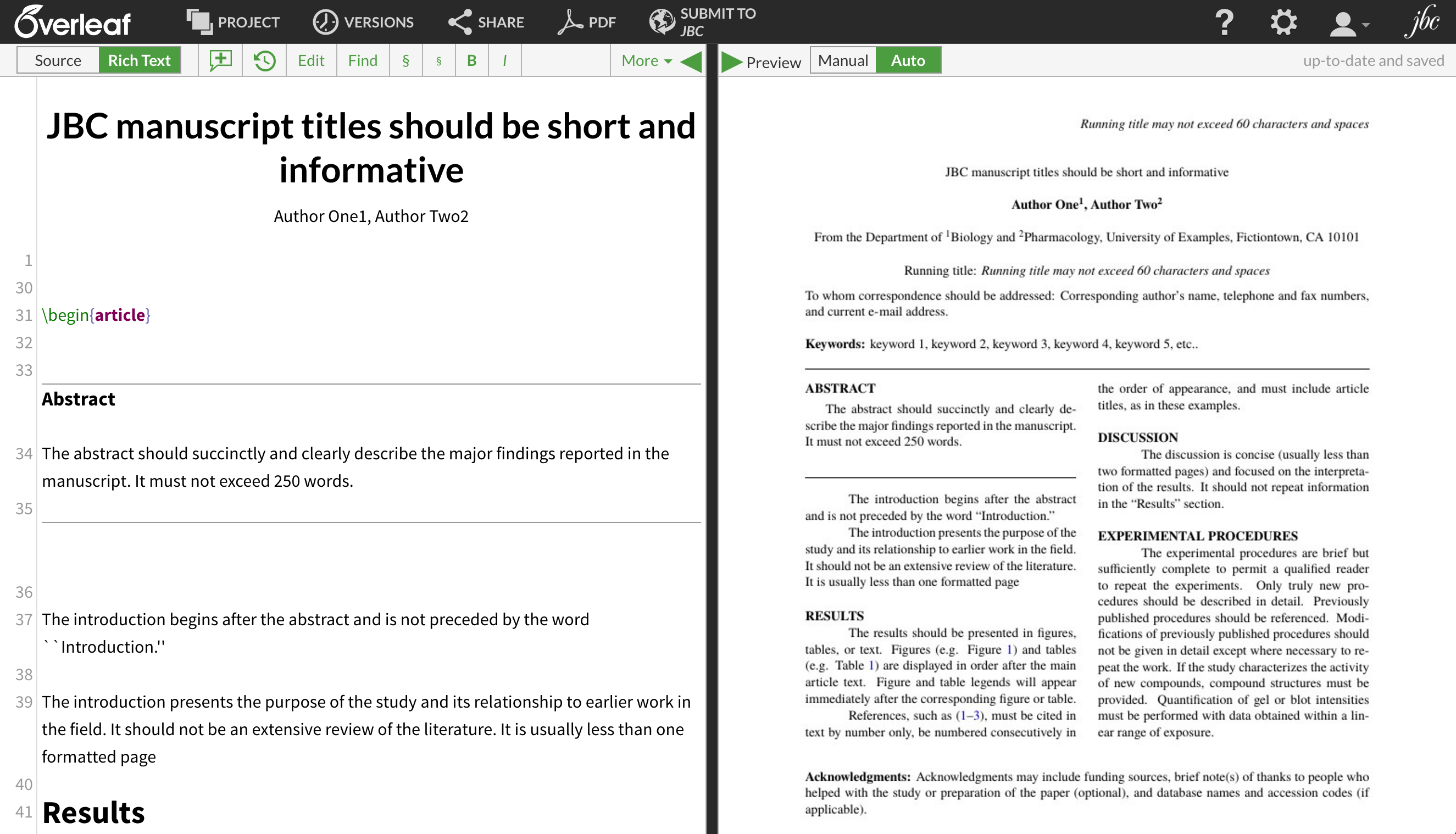 Select from an array of journal templates and submit directly from overleaf. This is a template for scientific manuscripts. This is a modification of the pnas template (also available on. Features several examples of how to embed figures directly into the text. Template for writing scientific manuscripts.