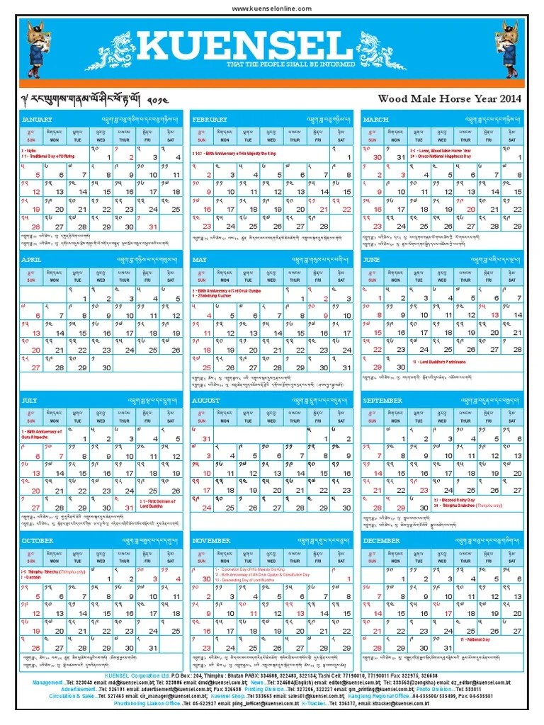 Bhutanese Calendar 2024 Kuensel - Phases of the moon are calculated using local time. Traditional day of offering (chunipa losar) bhutan calendar year 1900 to 2099. Web to all our readers, look out for our 2024 calendar in tomorrow's (december 4, 2023) kuensel issue. Lord buddha's parinirvana jun 16: First sermon of lord buddha nov 01:. Web desktop calendar for january 2024 happy new year 2024, with wishes for a happy, healthy, and prosperous year. Yearly calendar showing months for the year 2024. Winter solstice (nyilo) jan 12: Web ༢༠༢༤ 2024 january sun mon tue wed thu fri sat 1 2 3 4 5 6 7 8 9 10 11 12 13 14 15 16 17 18 19 20 21 22 23 24 25 26 27 28 29 30. Web calendar for january 2024 (bhutan) printing help page for better print results.