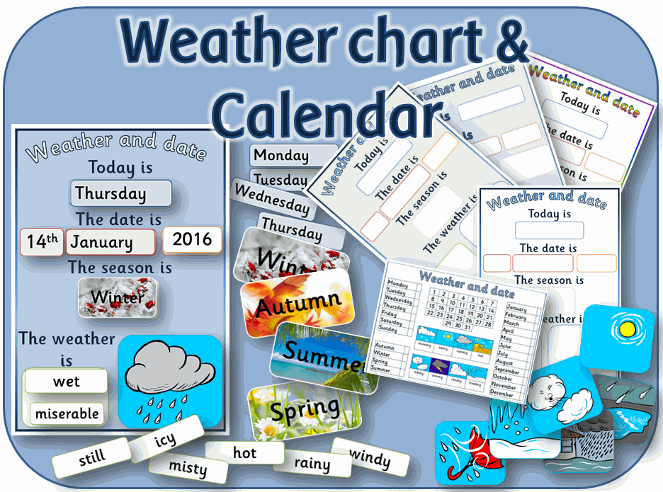 Weather chart and daily calendar for EYFS KS1 Teaching Resources
