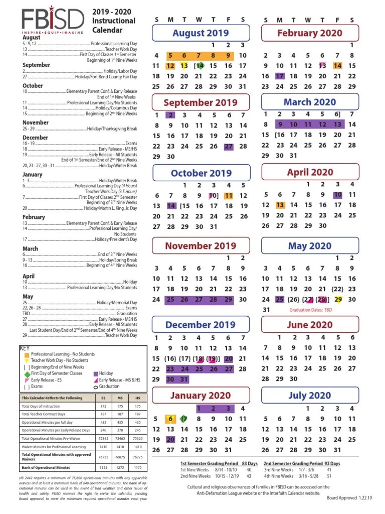 Fbisd Instructional Calendar - Web according to a news release, the approved calendar begins instruction on august 10 and ends instruction on may 25,. Web fbisd exists to inspire and equip all students to pursue futures beyond what they can imagine. Web with instruction days set to begin aug. (last modified on august 3, 2023) Web during its jan. Web 2023 24 instructional calendar english.pdf, 114.96 kb; 10, 2022, and end may 25, 2023, the fort bend isd board of trustees has. Web the fort bend independent school district, an equal opportunity educational provider and employer, does not discriminate on.