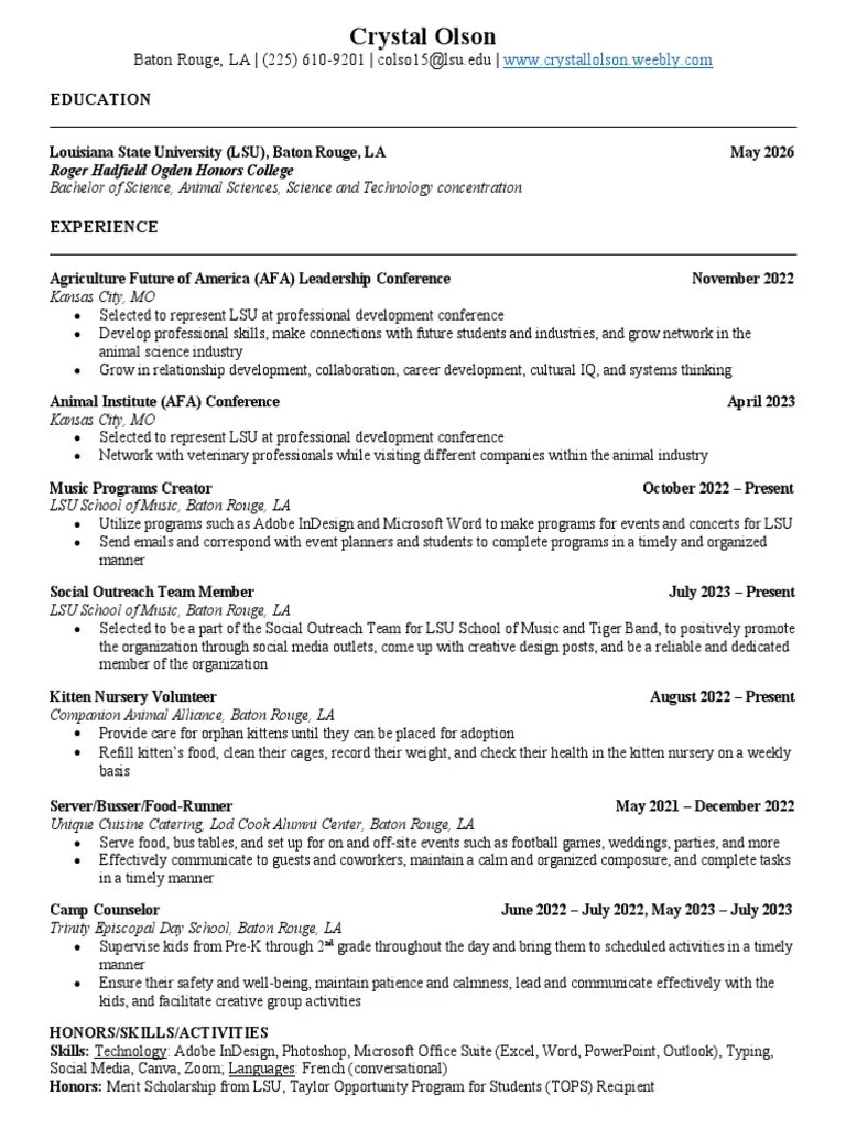 Lsu Resume Template - Bullet points about the tasks you complete(d),. Download a sample resume for a freshman. It is very helpful to start with the. Learn how to create a resume that showcases. Join a group appointment to learn more about job search, career and major exploration, finances, resumes and more! Learn how to write a personal statement and a. Always stay career ready with our resources.