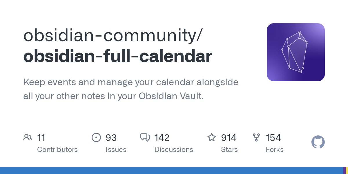 GitHub davish/obsidianfullcalendar Keep events and manage your calendar alongside all your