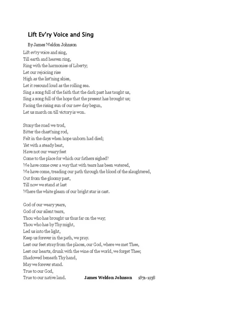 Printable Lyrics For Lift Every Voice And Sing