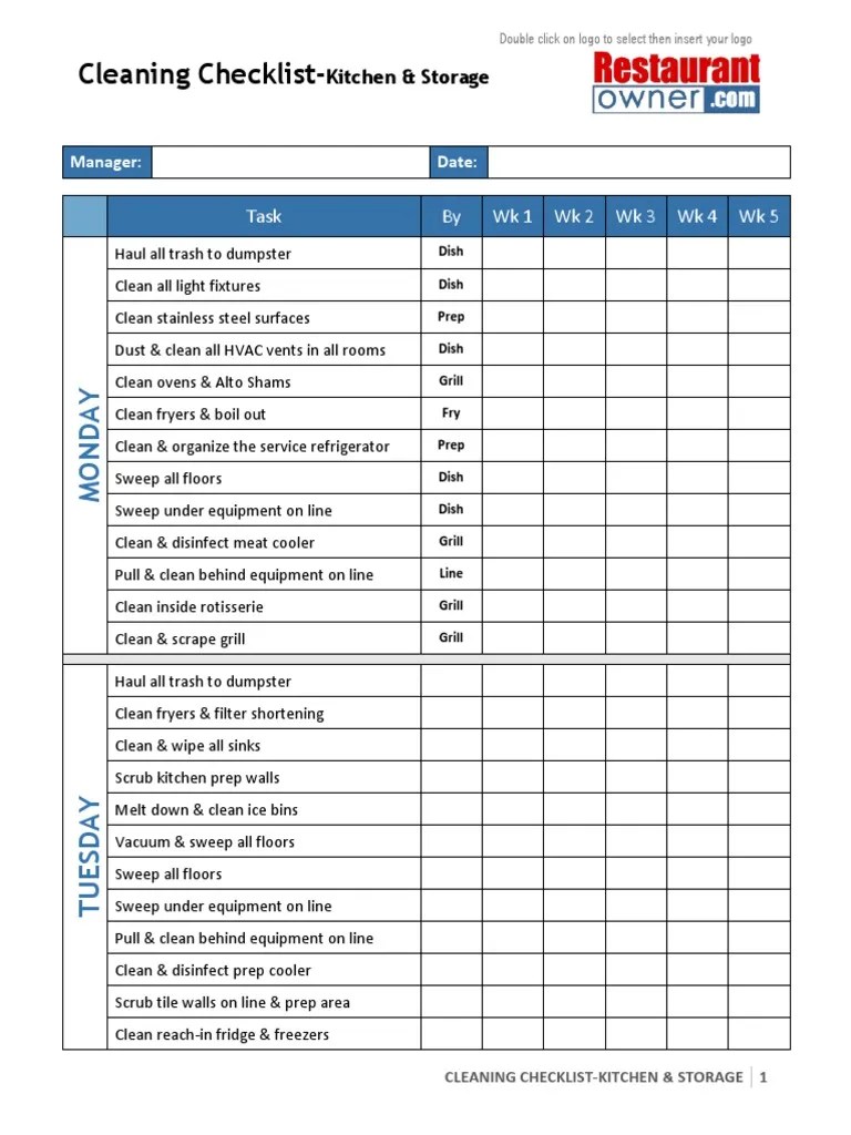 I’ve included a free, downloadable restaurant kitchen cleaning checklist for every area of your restaurant, from the dining room to the bar and kitchen. Easily customize and create a professional restaurant cleaning checklist online for free. It’s just like the first two. Use our printable cleaning checklists to create a cleaning schedule for your restaurant to improve general health and.