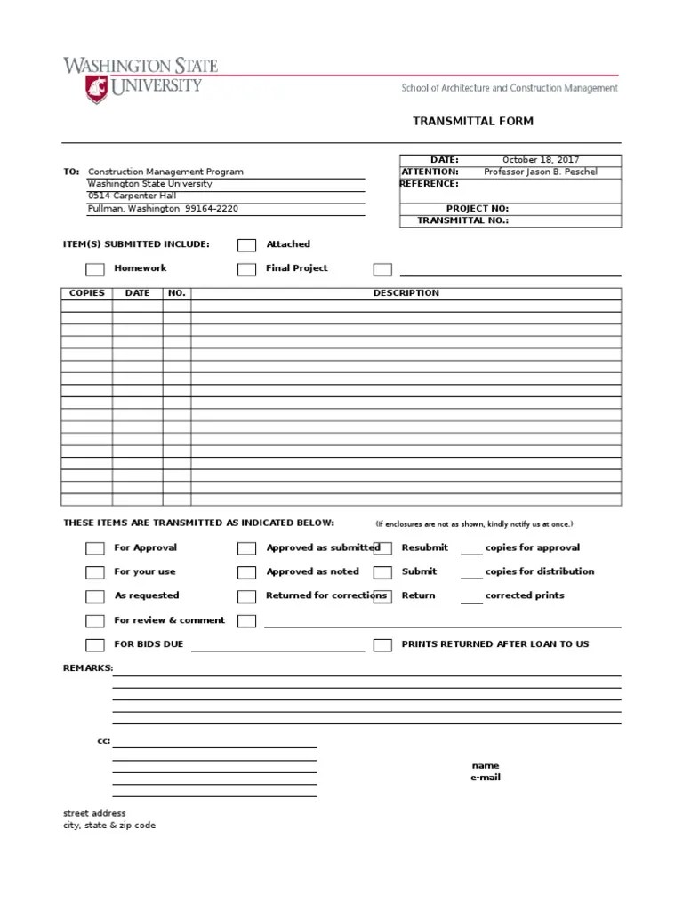Transmittal Form Template PDF