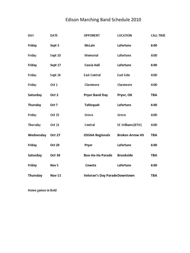 Edison Band Schedule Updated PDF